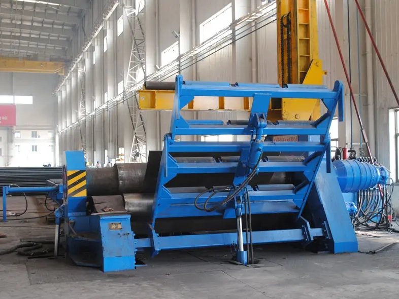 2. 四輥卷板機(jī)送料:水平喂入鋼板,使鋼板末端與整個(gè)前輥接觸,然后將前輥降低到原始位置。